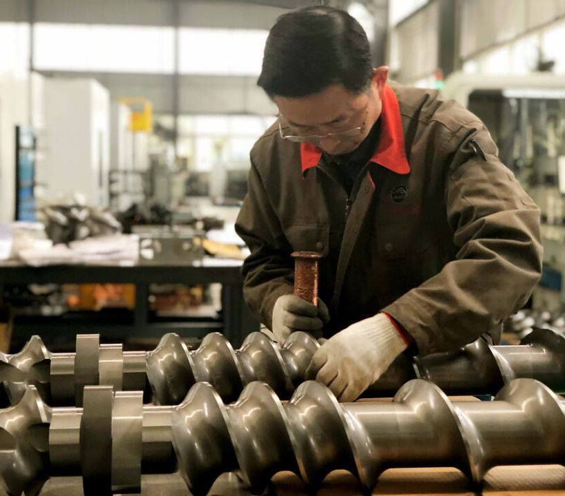 螺桿:螺桿為合金鋼材質(zhì),積木組合式螺桿,螺桿直徑:57mm,長徑比為:1:25.5,螺桿螺紋有效長度:1453.5mm