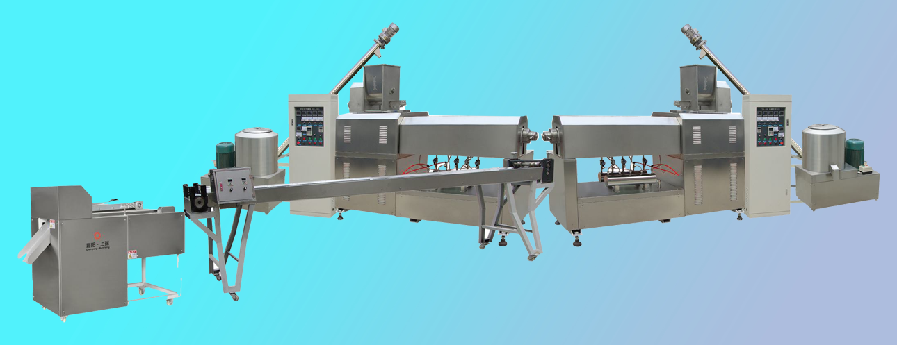 直接擠出型咬膠主要加工條狀、棒狀雙色咬膠,其形狀通過磨具擠壓后直接定型,通過切斷機(jī)切斷后達(dá)到要求的理想尺寸。其形狀根據(jù)產(chǎn)品要求開模,五角星、五棱、六棱、十字、狗骨頭,、雙色熊掌、五花肉等形狀等。