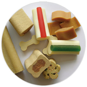 狗咬膠磨牙棒屬于一種寵物玩具或?qū)櫸锸澄?br /> .狗咬膠根據(jù)加工方法可以分為牛皮咬膠、壓鑄型咬膠、直接擠出型咬膠