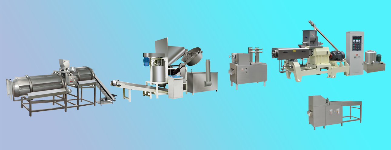 原料混合-膨化--整形切斷-油炸-噴油調(diào)味-冷卻-包裝