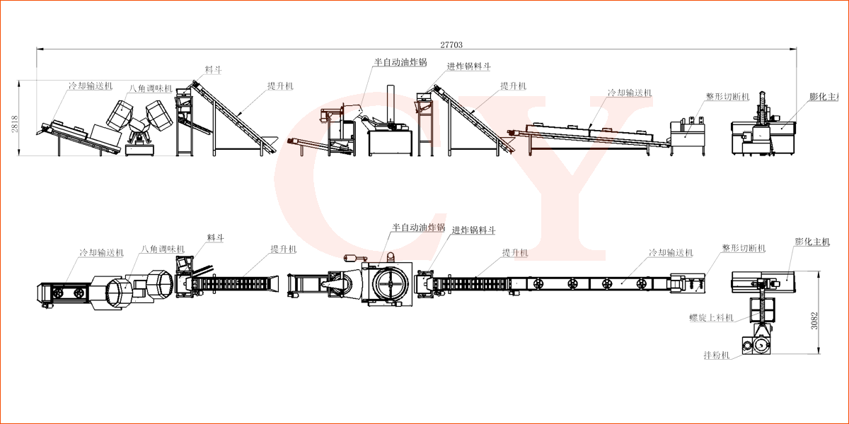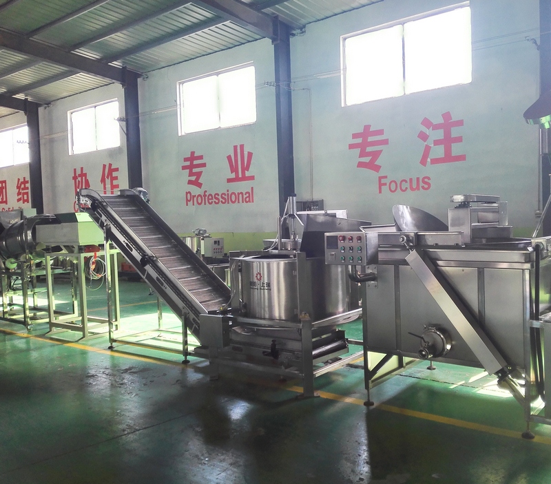 批次起降式油炸脫油機(jī)-提升機(jī)-稱斗-雙筒旋轉(zhuǎn)八角調(diào)味機(jī)