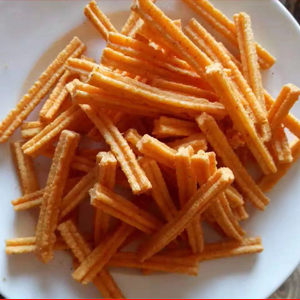 油炸膨化小食品生產(chǎn)線可以生產(chǎn)鍋巴、薯?xiàng)l、薯片、尖角脆、比薩卷等產(chǎn)品。通過變換膨化機(jī)的磨具和成型切斷機(jī)即可生產(chǎn)多種形狀的產(chǎn)品,較為復(fù)雜的三維立體妙脆角、小魚、等產(chǎn)品需配合整形切斷設(shè)備,通過更換滾刀性狀可以實(shí)現(xiàn)加工不同形狀的產(chǎn)品