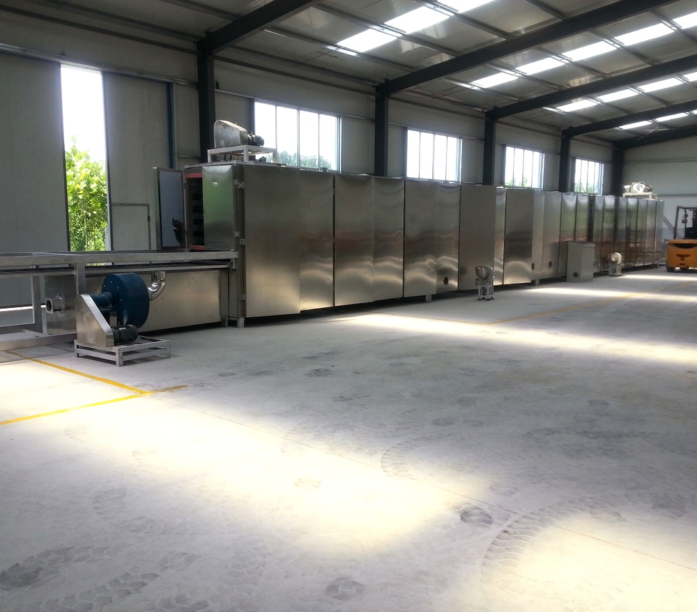 烤箱上料方式:可以直接選用帶爬坡結(jié)構(gòu)和外部借助輸送機送入烘干機料床,直接爬坡的烘干機結(jié)構(gòu)可以更直觀的觀測到物料布料狀況,多用于產(chǎn)量較大的生產(chǎn)線;借助外部上料的烤箱占地面積小,安裝方便,多用于單臺膨化主機的生產(chǎn)線配置