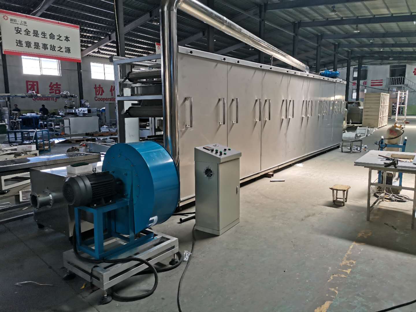 2整機傳動采用雙節(jié)距滾子鏈傳動,往返式烘干,運轉(zhuǎn)平穩(wěn)無卡阻現(xiàn)象。根據(jù)場地和產(chǎn)品可以設(shè)計3、5、7層烘干機 ,帶寬規(guī)格有760mm\1000mm\1200mm規(guī)格