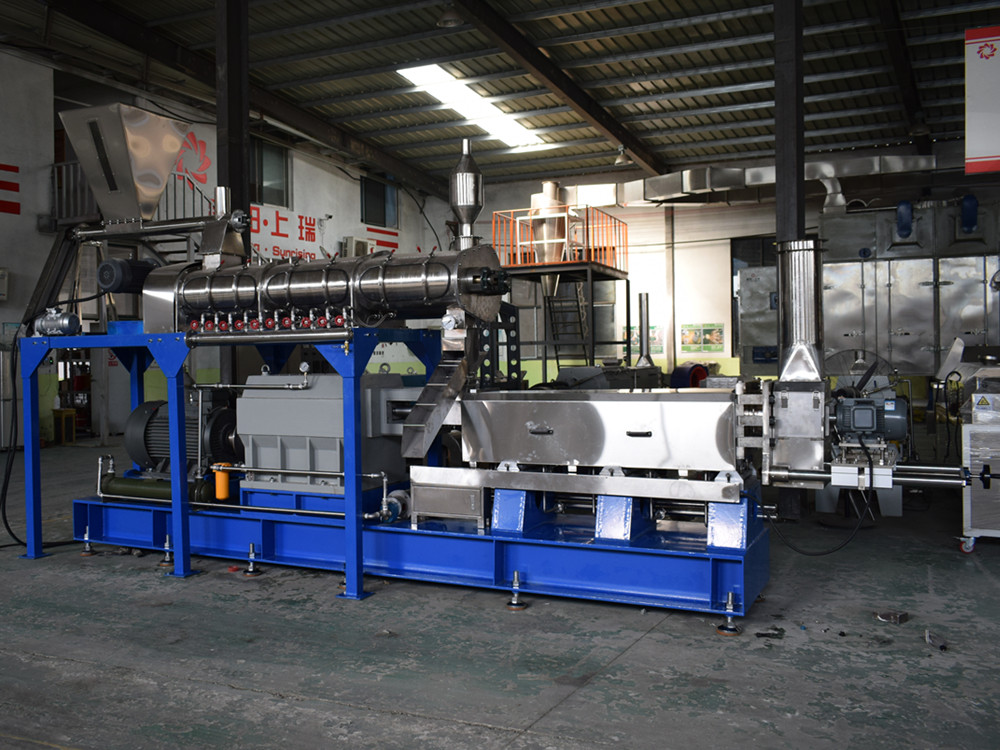 雙螺桿膨化機(jī)應(yīng)用領(lǐng)域涵蓋農(nóng)產(chǎn)品深加工早餐方便粥、營(yíng)養(yǎng)米、方便米飯、早餐谷物食品、休閑膨化食品、拉絲蛋白、變性淀粉、寵物食品、水產(chǎn)飼料等加工領(lǐng)域。