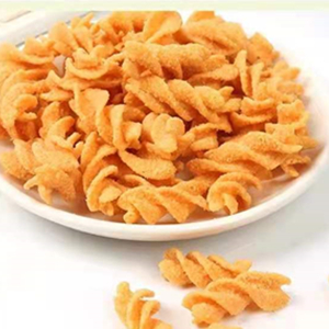 本生產(chǎn)線可生產(chǎn)產(chǎn)品流行的產(chǎn)品八爪燒、比薩卷 豌豆脆 貝殼酥等產(chǎn)品。新工藝產(chǎn)品更酥脆,新形狀,形成視覺沖突