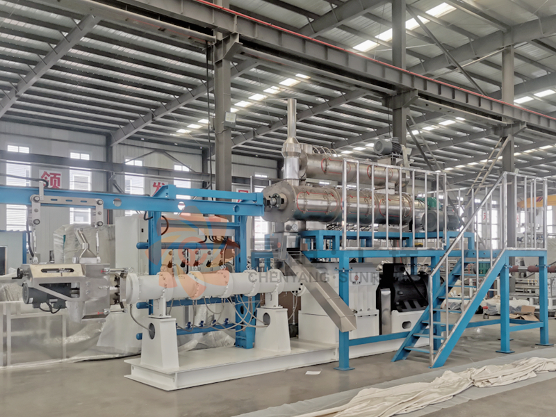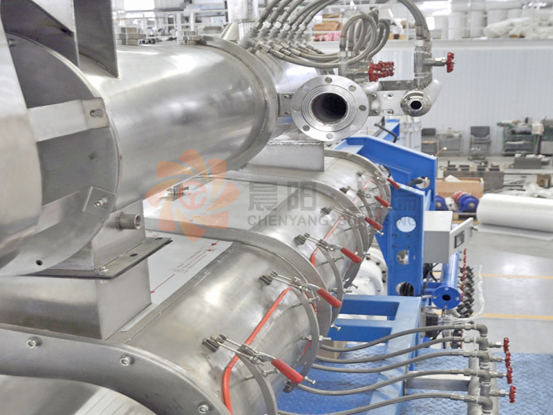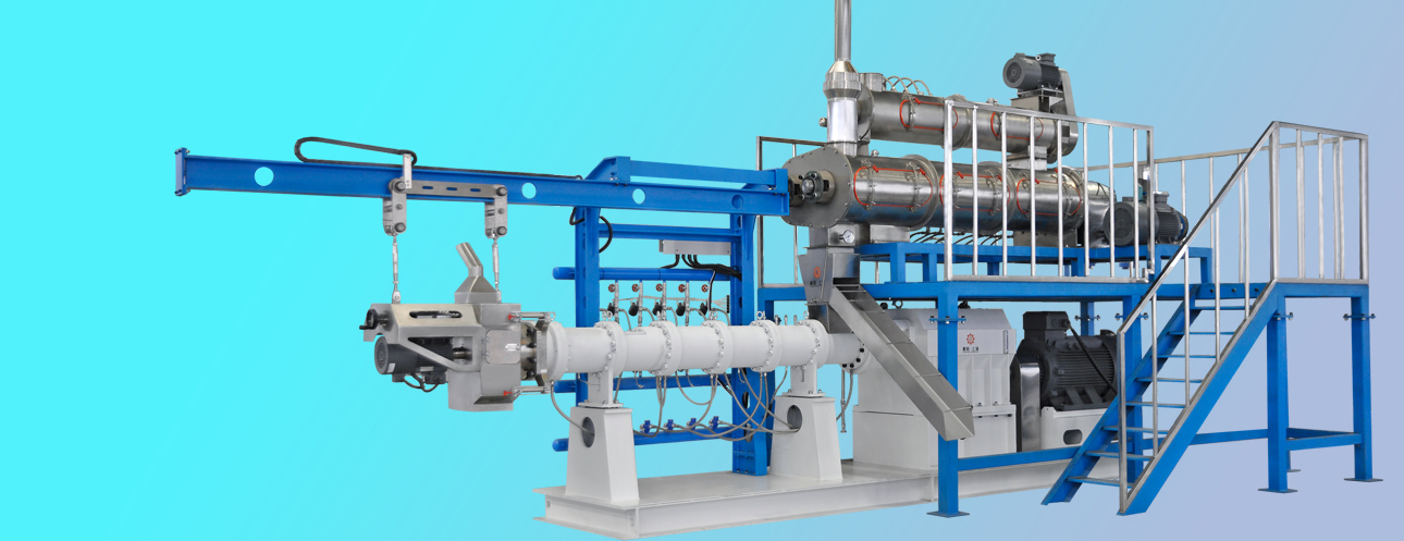 雙螺桿膨化機由供料系統、擠壓系統、旋切系統、加熱系統、冷卻系統、傳動系統、控制系統組成。該機適用原料廣泛、生產產品多樣,變頻調速、自動化程度高、運行平穩(wěn)、使用壽命長。